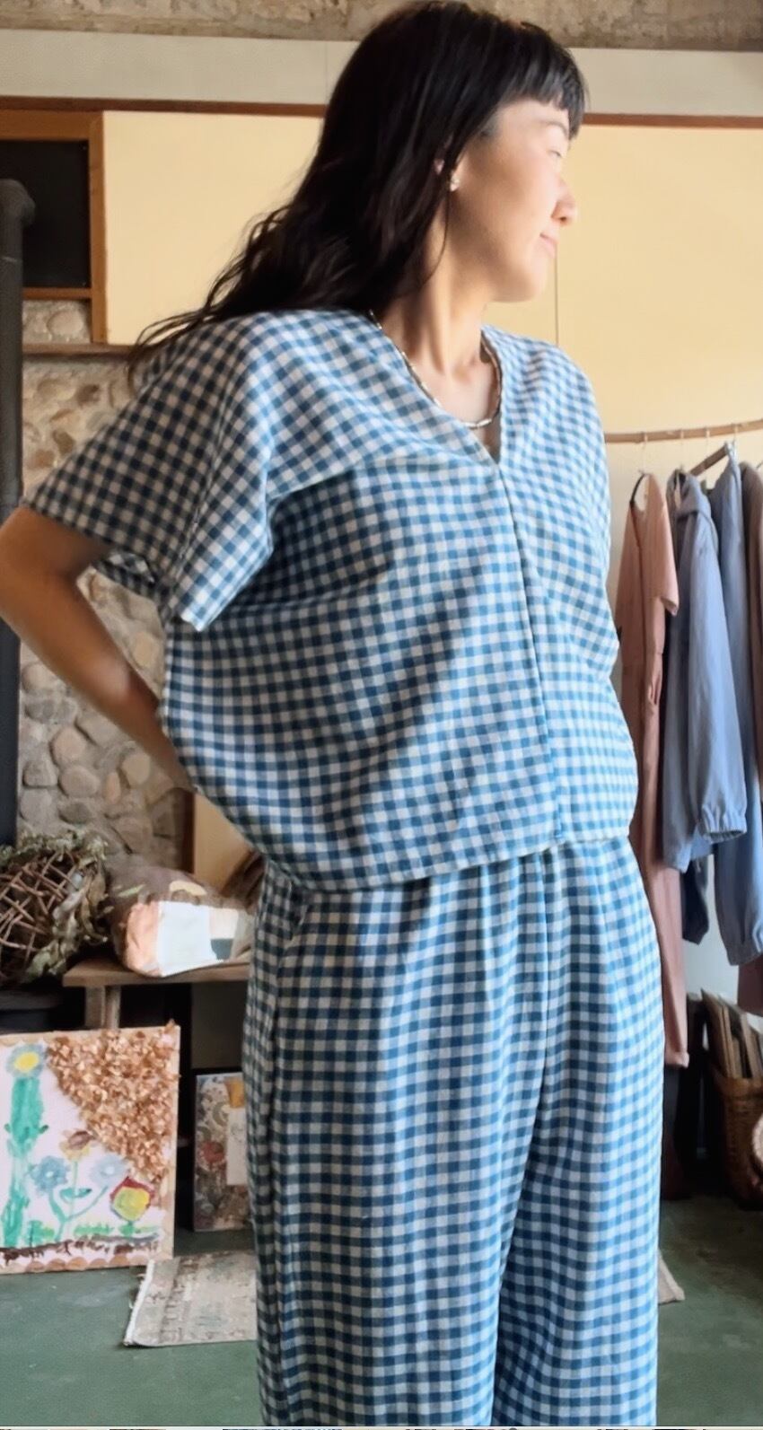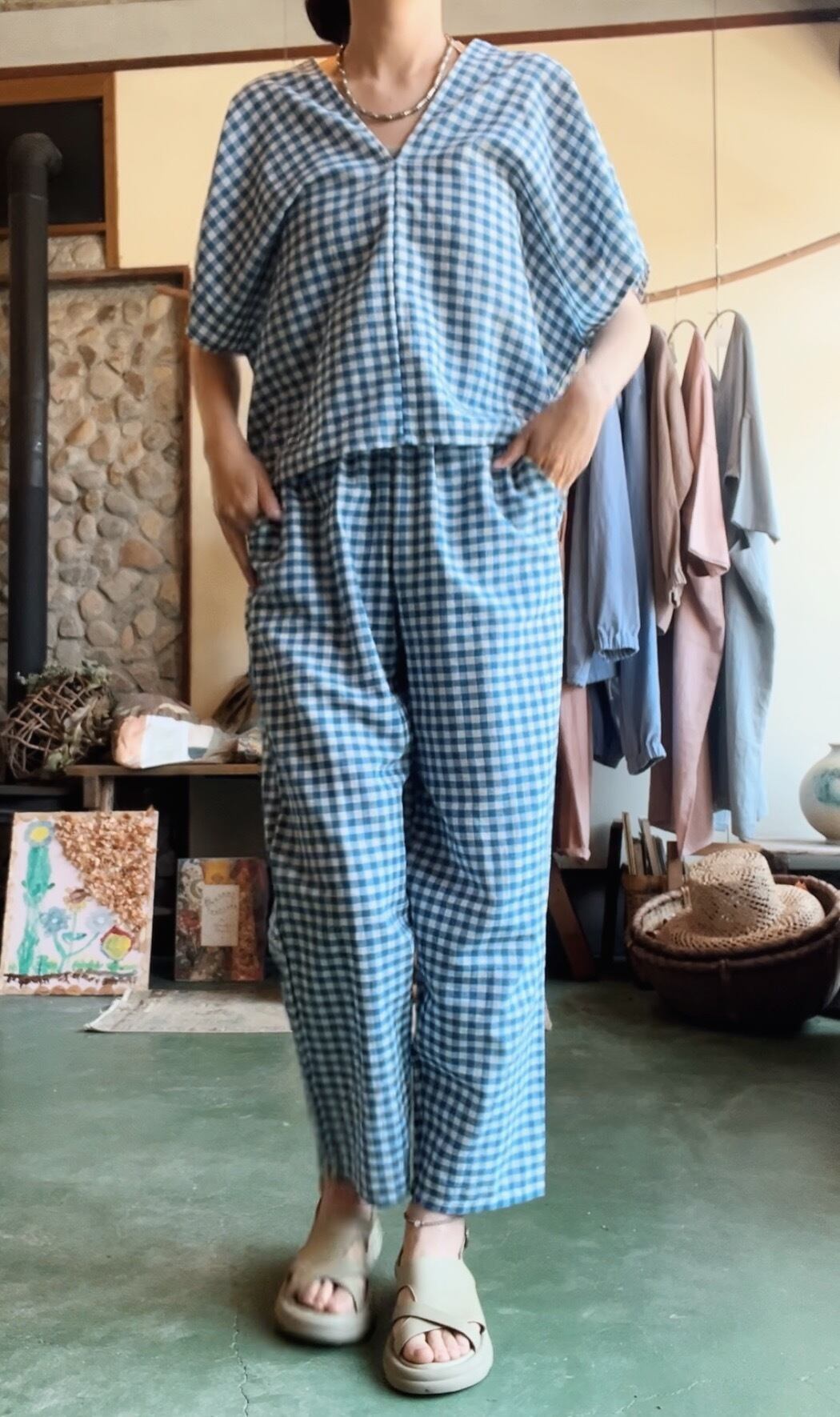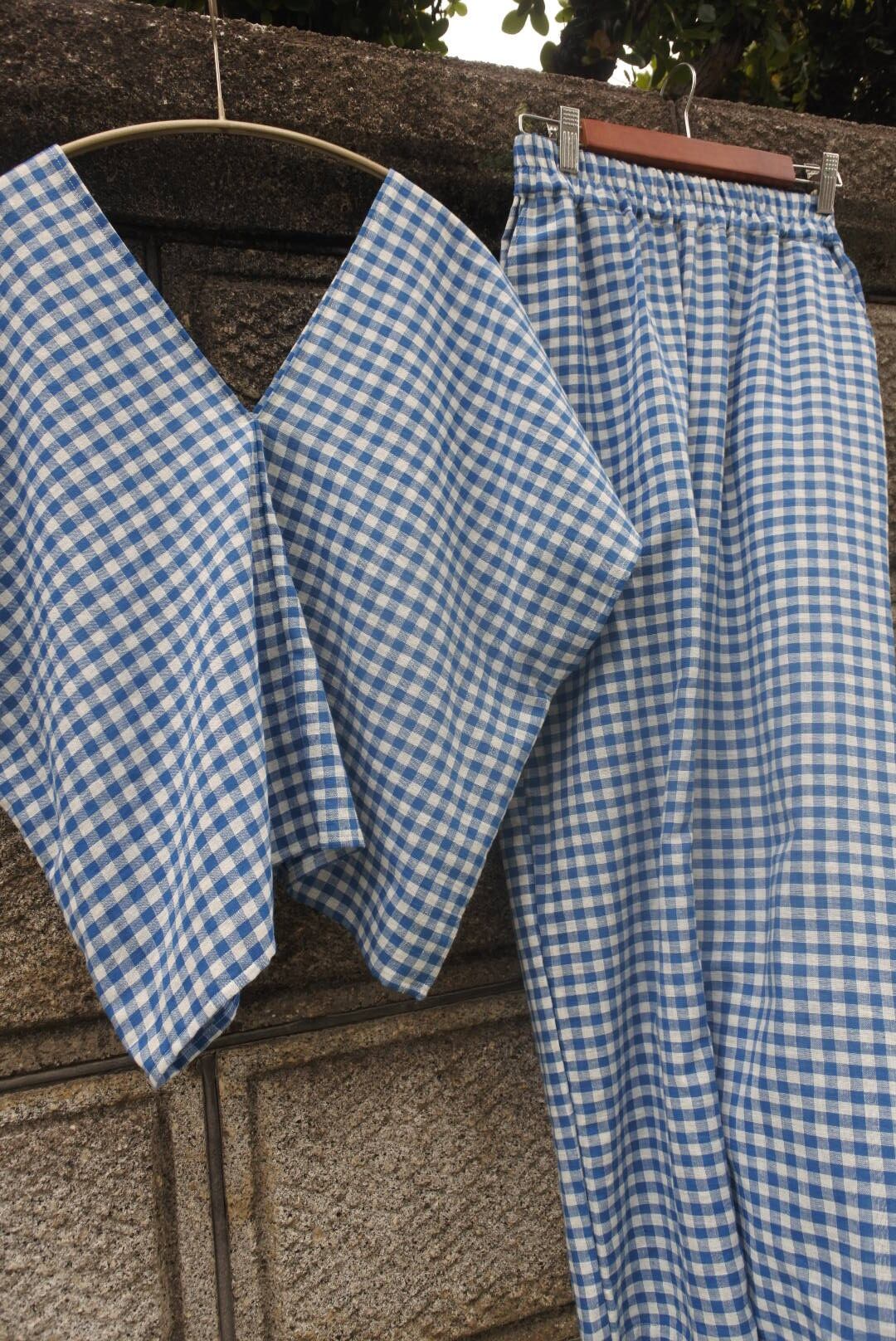 gingham check set up/BLUE